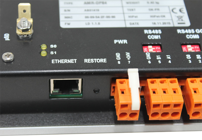 Interfész: Ethernet, 2x RS485, GSM, SD kártya, web szerver