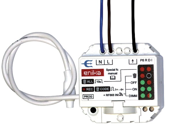 Univerzális vevőkészülék fényerő szabályozható világításvezérléshez tervezve. Kis mérete miatt könnyedén a kapcsolódobozba szerelhető. Vezeték nélküli vezérlésének köszönhetően, amennyiben a lámpa mellé kötik be, a kapcsolóhoz vezeték kihúzása és így a fal vésése nem szükséges. Képes ellátni alapvető funkciókat, így egyszerűbb feladatok elvégzéséhez nincs szükség központi vezérlőegységre.